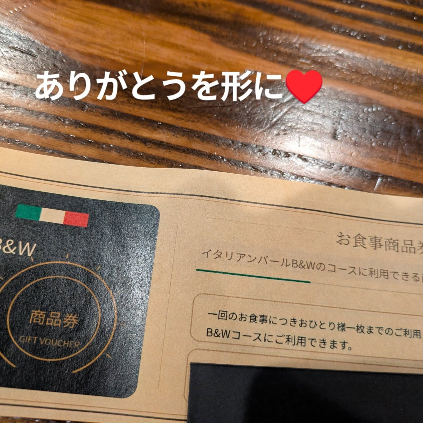 Ciao(^o^)♥Ciao(^o^)♥ いつもありがとうございます♥ お客様の声からできた B&Wコースのお食事券✨ 大切な方に♥ お祝いのお返しに♥ など お役に立てれば 幸いです✨