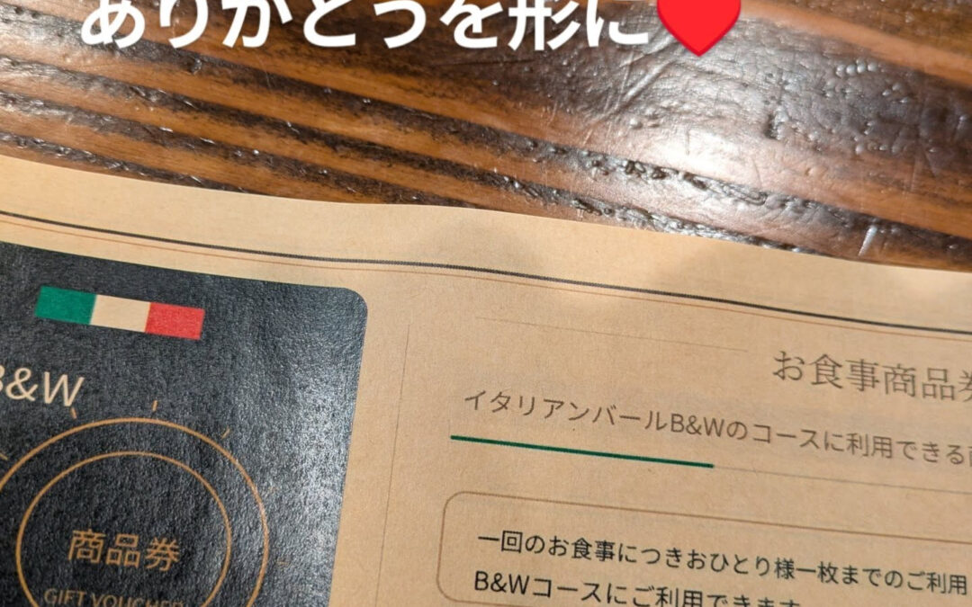 Ciao(^o^)♥ 2026年04月06日 Ciao(^o^)♥ いつもありがとうございます♥ お客様の声からできた B&Wコースのお食事券✨ 大切な方に♥ お祝いのお返しに♥ など お役に立てれば 幸いです✨