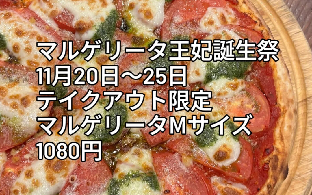 Ciao(^o^) 2025年11月16日 Ciao(^o^) 11月20日はマルゲリータ王妃のお誕生日 マルゲリータ王妃がこよなく愛したピッツァ マルゲリータМサイズを テイクアウト限定 20日〜25日まで 1080円♥ 共にお祝いしましょう