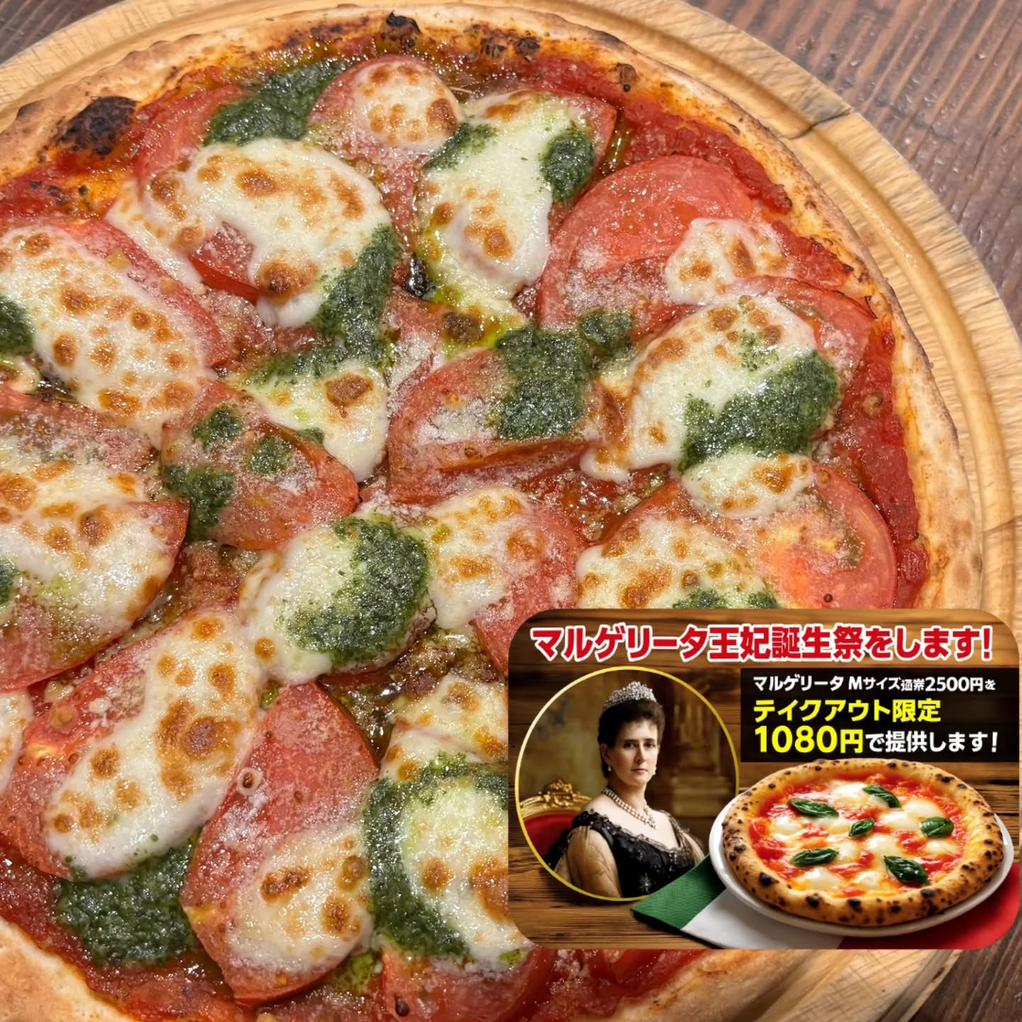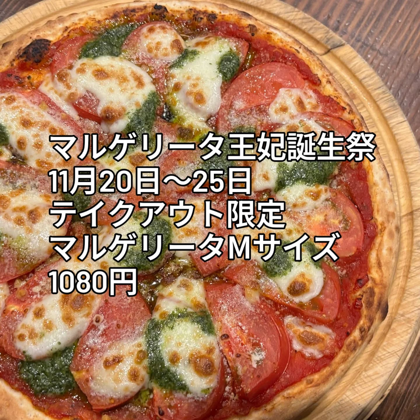 Ciao(^o^)Ciao(^o^) 11月20日はマルゲリータ王妃のお誕生日 マルゲリータ王妃がこよなく愛したピッツァ マルゲリータМサイズを テイクアウト限定 20日〜25日まで 1080円♥ 共にお祝いしましょう
